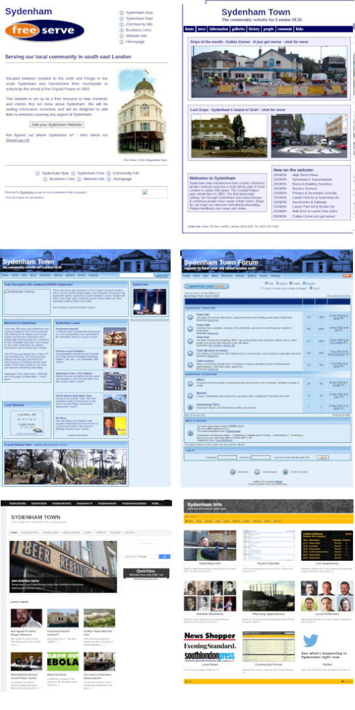 We have been building Sydenham websites for over twenty five years. First as something to fill the free hosting space from our ISP of the time Freeserve in the 1990s. This evolved into Sydenham Town with its own domain sydenham.org.uk in 2000. The amount of feedback and comments led to launching the award winning Sydenham Town Forum.