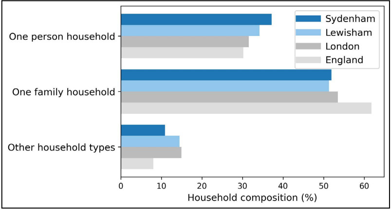 Selected statistics from the Sydenham ward profile published by Lewisham Council: